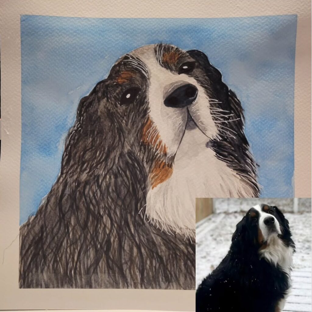 Discover our hand-painted watercolor dog portraits, each uniquely capturing your pet’s charm and character. We can transform a photo of your dog into a beautiful watercolor portrait. Perfect for art lovers and dog enthusiasts seeking a heartfelt addition to their home or a meaningful gift.